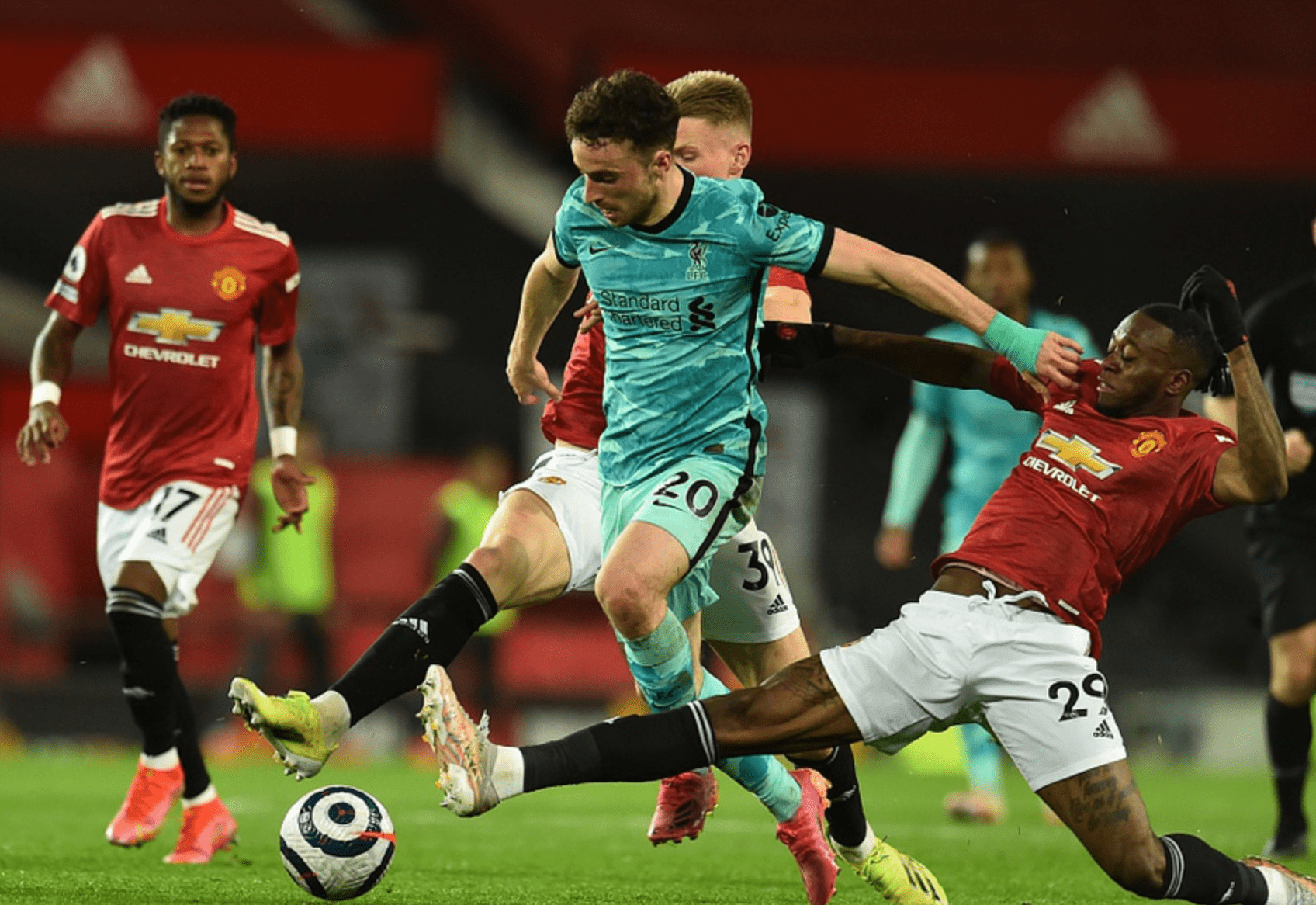 [英超]索博斯洛伊打门被挡 加克波跟进补射破门.}
